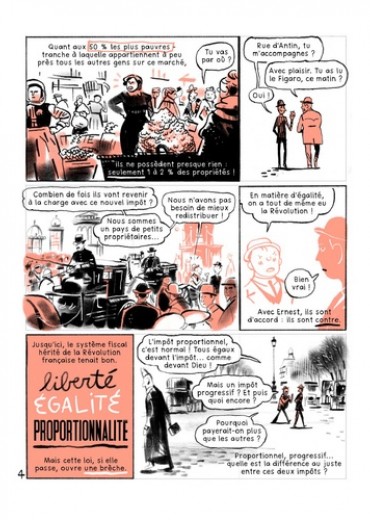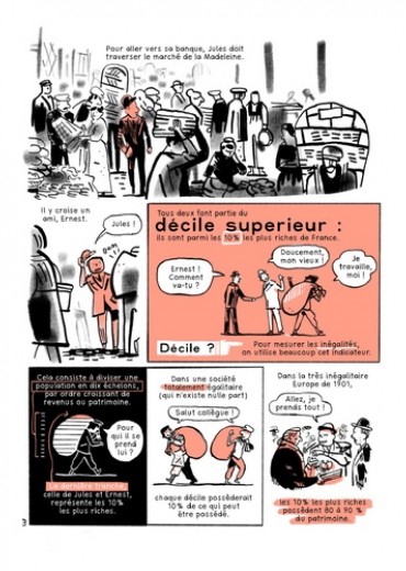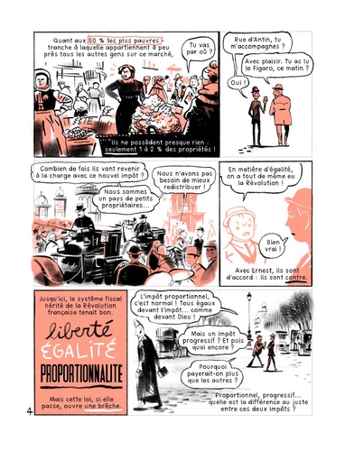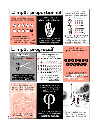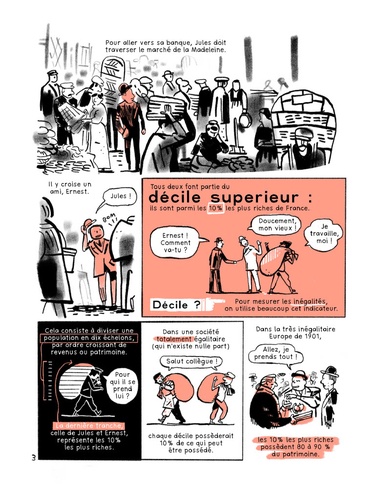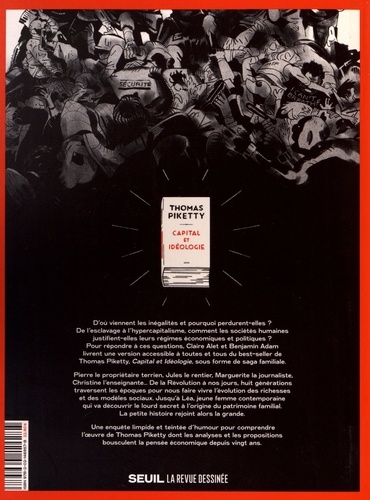 D'où viennent les inégalités et pourquoi perdurent-elles ? Pour répondre à ces questions, le livre propose une version accessible à tous du best-seller de Thomas Piketty, Capital et Idéologie. Dans cette grande enquête historique, parfois teintée d'humour, Claire Alet et Benjamin Adam ont conçu une saga familiale. Jules, le personnage principal, né à la fin du XIXe siècle, incarne le rentier, figure privilégiée d'une société hyper inégalitaire où la propriété est sacralisée. Lui, sa famille et son entourage vont vivre l'évolution des richesses et des modèles sociaux. Huit générations se succèdent ainsi, traversant toutes les époques. Jusqu'à Léa, jeune femme contemporaine qui va découvrir le secret de famille à l'origine de leur patrimoine. La "petite histoire" de cette famille rejoint alors la "grande histoire" . Diplo^me´e de Sciences-Po, Claire Alet, 44 ans, a travaillé comme journaliste à Alternatives Economiques pendant une dizaine d'années, avant d'en devenir rédactrice en chef adjointe de 2014 a` 2019. Elle a par ailleurs développé une activité d'autrice de films documentaires pour Arte et dirige depuis janvier 2022 une collection de littérature du réel chez Bayard. Benjamin Adam né en 1983, est un auteur de bande dessinée et illustrateur jeunesse français. Il est diplômé de l'atelier d'illustration des Arts décoratifs de Strasbourg, et travaille régulièrement pour l'édition et la presse. Derniers ouvrages parus : Joker, La Pastèque, 2015 (scénario et dessin) et Soon, Dargaud, 2019 (coscénario avec Thomas Cadène et dessin).
