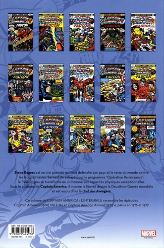 Captain America, sauveur de l'univers ? Steve Rogers et son camarade Sam Wilson, alias le Faucon, se retrouvent confrontés à des menaces d'autres dimensions dans des aventures très spéciales. Bien sûr, il faut compter aussi sur les ennemis habituels, comme Crâne Rouge et Arnim Zola ! Attention, événement ! Ce volume de CAPTAIN AMERICA : L'INTEGRALE n'a pas comme seul argument d'être totalement réalisé par Jack Kirby... Il est entièrement composé d'épisodes jamais publiés en France ! Des histoires que les fans rêvent de découvrir depuis des décennies. Quoi de mieux pour fêter les quatre-vingts ans du héros ?