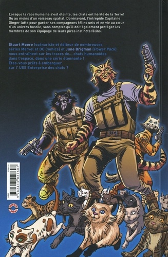 Stuart Moore (scénariste et éditeur de nombreuses séries Marvel et DC Comics) et June Brigman (Power Pack) nous entraînent sur les traces de... chats humanoïdes dans l'espace, dans cette série étonnante et originale, entre Blacksad et Star Trek ! Lorsque la race humaine s'est éteinte, les chats ont hérité de la Terre ! Ou au moins d'un vaisseau spatial. Dorénavant, l'intrépide Capitaine Ginger lutte pour garder ses compagnons félins unis et envie au coeur d'un univers hostile - sans compter qu'il doit également protéger les membres de son équipage de leurs pires instincts félins.