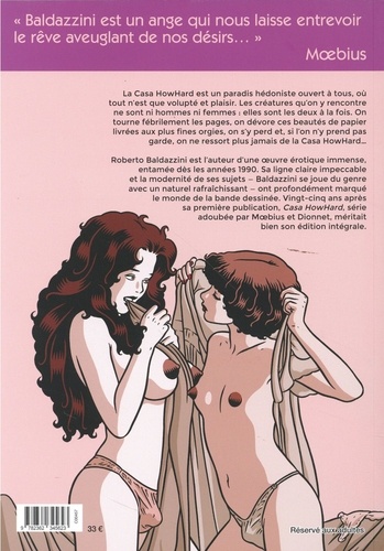 " Baldazzini est un ange qui nous laisse entrevoir le rêve aveuglant de nos désirs... " Moebius La Casa HowHard est un paradis hédoniste ouvert à tous, où tout n'est que volupté et plaisir. Les créatures qu'on y rencontre ne sont ni hommes ni femmes : elles sont les deux à la fois. On tourne fébrilement les pages, on dévore ces beautés de papier livrées aux plus fines orgies, on s'y perd et, si l'on n'y prend pas garde, on ne ressort plus jamais de la Casa HowHard...
