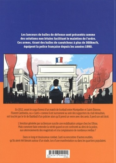 Voici le témoignage de Florent Casti, jeune supporter de Montpellier, éborgné par un tir de flashball avant un match. C'est le récit de sa recontruction et de sa lutte pour faire connaitre la vérité, face à la police, à la justice, aux médias... C'est une enquête pour comprendre pourquoi la violence et l'usage d'armes de guerre sont les seules réponses sécuritaires des autorités.