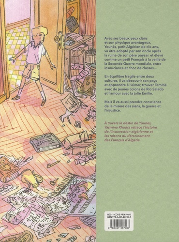 Avec ses beaux yeux bleus et son physique avantageux, Younes, petit Algérien de dix ans, intègre une communauté de roumis, ces Français vivant en Algérie à la veille de l'insurrection. Younes, un petit Algérien de dix ans, vit avec ses parents et sa soeur. Après l'incendie criminel de leur récolte, ils sont ruinés et doivent quitter leurs terres pour trouver du travail en ville à Oran. Son père, ne pouvant subvenir à ses besoins, décide de confier son fils à son frère, pharmacien, marié à une Française. Younes devient Jonas et intègre une communauté de roumis c'est-à-dire des Français vivant en Algérie, les futurs " pieds-noirs ". Avec ses beaux yeux bleus et son physique avantageux, Younes est vite accepté par sa nouvelle communauté aisée. Au fil des années, il va découvrir son pays et apprendre à l'aimer, l'amitié entre quatre amis, de jeunes colons, et l'amour nommé Emilie. Mais il va aussi découvrir la misère des siens, la guerre et l'injustice. A travers le destin de Younès, Yasmina Khadra retrace l'histoire de l'insurrection algérienne et les raisons du déracinement des français d'Algérie.