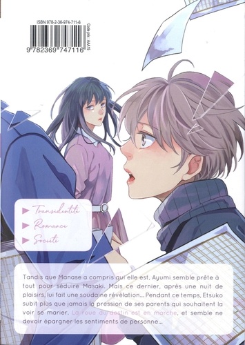 "Même si cet amour n'a pas d'avenir, je ne regrette pas de t'avoir connu. . ". Dernier opus de "Celle que je suis", le manga de Bingo Morihashi. Entre pression sociale et société patriarcale, Manase, femme trasngenre, trouvera-t-elle le bonheur ? Tandis que Manase a compris qui elle est, Ayumi semble prête à tout pour séduire Masaki. Mais ce dernier, après une nuit de plaisir, lui fait une étonnante révélation... Pendant ce temps, Etsuko subit, plus que jamais, de la pression de la part de ses parents, qui souhaitent la voir se marier. La roue du destin est en marche, et semble ne devoir épargner les sentiments de personne...