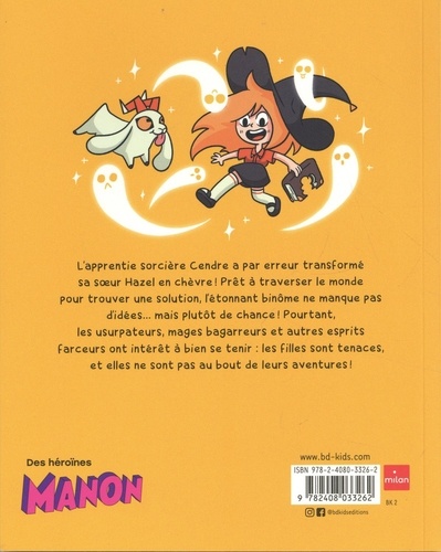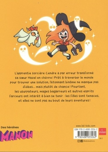 Il y a quelque temps, Cendre, jeune sorcière attachante mais sacrément têtue, a malencontreusement transformé sa grande soeur Hazel... en chèvre ! Depuis, l'étonnant binôme traverse le monde en quête d'une solution pour enfin redonner forme humaine à la pauvre jeune fille. Un grimoire contenant une formule secrète, une potion, une tour magique où l'on peut exaucer un souhait à chaque solstice, le duo ne manque pas d'idées... mais plutôt de chance ! Car, sur la route de Cendre et Hazel, on trouve plus d'esprits farceurs, de mages menteurs, de chevaliers bagarreurs ou de vampires usurpateurs que de personnes capables de leur venir en aide. Qu'à cela ne tienne, les filles sont tenaces, et ne sont pas au bout de leurs aventures ! Une série d'action, de magie et d'humour, où les chèvres parlent et les filles n'en font qu'à leur tête, par les auteurs d'"Aubépine" !