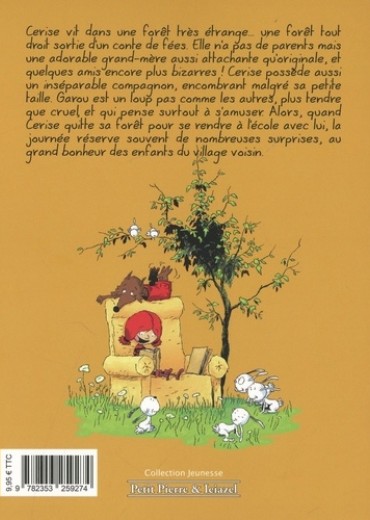 Cerise vit dans une forêt très étrange... une forêt tout droit sortie d'un conte de fées. Elle n'a pas de parents mais une adorable grand-mère aussi attachante qu'originale, et quelques amis encore plus bizarres ! Cerise procède aussi un inséparable compagnon, encombrant malgré sa petite taille. Garou est un loup pas comme les autres, plus tendre que cruel, et qui pense surtout à s'amuser. Alors, quand Cerise quitte sa forêt pour se rendre à l'école avec lui, la journée réserve souvent de nombreuses surprises, au grand bonheur des enfants du village voisin.