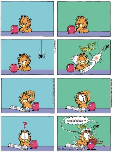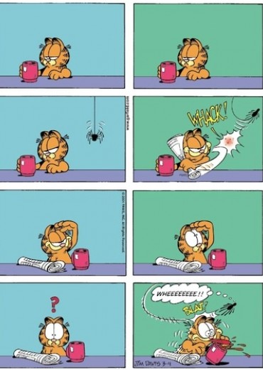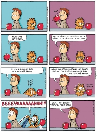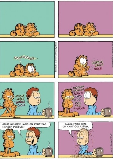 Que les choses soient bien claires : il a beau avoir un regard de cocker endormi et une démarche d'éléphant sorti du lit (surtout au moment d'aller prendre son bain), Garfield est un CHAT. Un chat qui a tout compris de la vie. Pour lui, le bonheur consiste à écraser les araignées, engloutir des cookies, profiter de la sieste et harceler Jon, son maître neurasthénique qui court (en vain) après les filles.