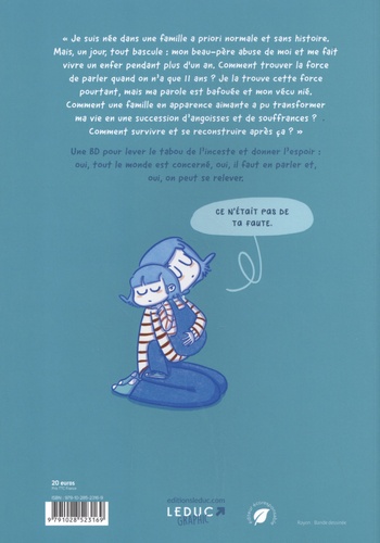 " Je suis née clans une famille a priori normale et sans histoire. Mais, un jour,, tout bascule : mon beau-père abuse de moi et me fait vivre un enfer pendant plus d'un an. Comment trouver la force de parler quand on n'a que 11 ans ? Je la trouve cette force pourtant, mais ma parole est bafouée et mon vécu nié. Comment une famille en apparence aimante a pu transformer ma vie en une succession d'angoisses et de souffrances ? Comment survivre et se reconstruire après ça ? "