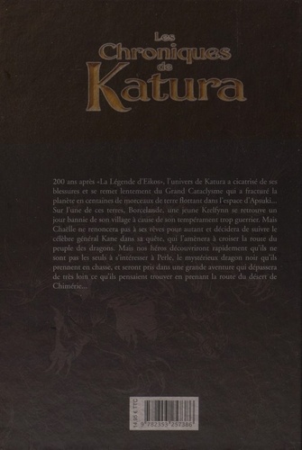 200 ans après "la légende d'Eikos", l'univers de Katura a cicatrisé de ses blessures et se remet lentement du Grand Cataclysme qui a fracturé la planète en centaines de morceaux de terre flottant dans l'espace d'Apsuki... Sur l'une de ces terres, Borcelande, une jeune Krelfynn se retrouve un jour bannie de son village à cause de son tempérament trop guerrier. Mais Chaëlle ne renoncera pas à ses rêves pour autant et décidera de suivre le célèbre général Kane dans sa quête, qui l'amènera à croiser la route du peuple des dragons. Mais nos héros découvriront rapidement qu'ils ne sont pas les seuls à s'intéresser à Perle, le mystérieux dragon noir qu'ils prennent en chasse, et seront pris dans une grande aventure qui dépassera de très loin ce qu'ils pensaient trouver en prenant la route du désert de Chimérie.
