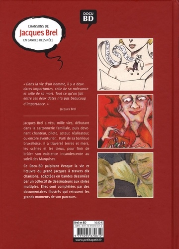 Jacques Brel a vécu mille vies, débutant dans la cartonnerie familiale, puis devenant chanteur, pilote, acteur, réalisateur, ou encore aventurier... Parti de sa banlieue bruxelloise, il a traversé terres et mers, les scènes et les cieux, pour finir de brûler son existence incandescente au soleil des Marquises.
