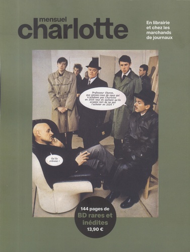 Charlotte mensuel est un journal de bande dessinée généraliste qui paraît dix fois par an. On y trouve tous les genres, de la BD d'aventures à l'autogiographie. Avec notamment Chris Ware, Bastien Vivès, Morgan Navarro, Seosie, Florence Cestac, Florent Ruppert, Michaël Sanlaville, Seth, Joe Matt et bien d'autres.