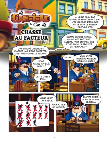 En l'absence d'Herman, le facteur, Garfield s'en prend son jeune remplaçant [tyranniser est trop fort, surtout si "cela se passe bien" !]. Au début, tout se passe à peu près bien, mais Garfield passe rapidement à la vitesse supérieure : ses tours deviennent redoutables. Et, cette fois, il a peut-être trouvé son maître... En tout cas, la guerre est déclarée !