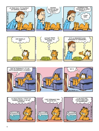 Garfield a trouvé une nouvelle passion : les jeux vidéos. Voici l'occasion de ridiculiser Jon et de rester vautré sur le canapé ! Après la sieste et les lasagnes, Garfield se découvre une nouvelle passion : les jeux vidéo. Accroché aux manettes, il se lance dans un marathon frénétique avec Jon pour partenaire. L'occasion rêvée pour ne pas décoller du canapé et pour se moquer de son maître. Le paradis, n'est-ce pas ? Mais, qu'on ne s'y trompe pas, Garfield n'en oublie pas pour autant une autre de ses activités préférées : faire enrager son entourage ! Les chiens du voisinage n'ont qu'à bien se tenir... Odie le premier ! Pas de doute, Garfield reste égal à lui-même : gourmand et persifleur. Mais sa nouvelle passion des jeux vidéo le rendrait-elle un poil geek ? La réponse dans ce 59e album, savoureux et déjanté !