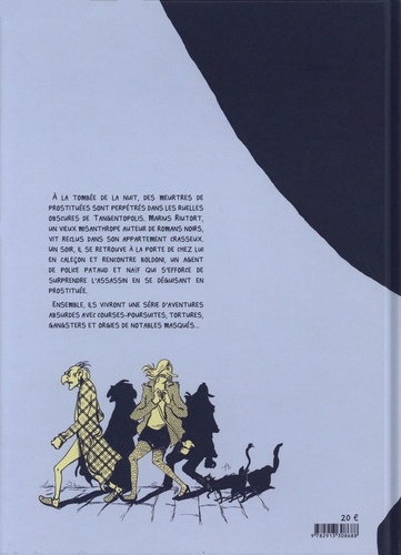 Un polar à la sauce grandguignol servi par l'humour macabre et réjouissant de Sebastià CABOT. Au rendez-vous : Poursuite infernale, gendarme en porte-jarretelle, gangsters et pâtée pour chat... La nuit venue, des prostituées sont mystérieusement assassinées dans les ruelles sombres de Tangentopolis. Marius Riutort est un vieux misanthrope, auteur de romans policiers au tempérament colérique, qui vit isolé du monde dans un appartement miteux. Une nuit, malencontreusement coincé dehors sans clés et en sous-vêtements, il rencontre Boldoni, un inspecteur de police maladroit et ingénu qui tente d'appâter le tueur en se déguisant en prostituée...