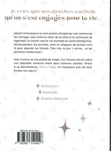 Adachi et Kurosawa se sont promis d'organiser une cérémonie de mariage. Mais entre le choix de la salle et la recherche de logement, le chemin vers la vie maritale est semé d'embûches. Heureusement, les proches, amis et collègues de bureau sont là pour épauler les fiancés. Très vite, le jour J arrive... et les émotions fortes aussi ! Avec humour et une pointe de magie, Yuu Toyota met en scène une adorable romance entre deux hommes adultes. Grâce à sa bienveillance, Cherry Magic ne manquera pas de faire fondre vos coeurs !