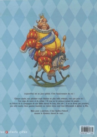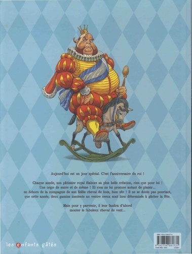 Deux auteurs d'exception mettent leur talent au service d'un conte porteur des valeurs de partage et de solidarité. L'occasion de transmettre aux plus jeunes l'esprit de révolte pour faire barrage à l'injustice. Le roi n'en peut plus d'impatience... C'est son anniversaire et qui dit anniversaire dit gâteau... Mais deux gamins juchés sur un cheval de vent viennent de le lui voler avant même qu'il ait pu en goûter une miette ! Tout ce que le château contient de gardes et de serviteurs se précipite alors en un instant, portant en tête de colonne sa majesté et sa monture de bois, à la poursuite des maraudeurs...