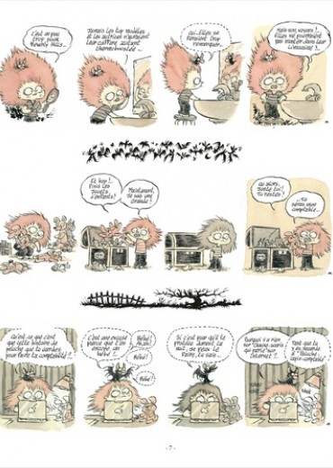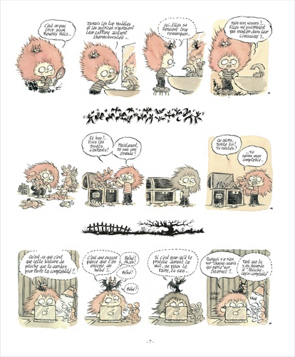 Zizi est une petite fille vive et imaginative qui s'ennuie à l'école en rêvant de gloire, de danger et ... de téléphone portable. Elle croise la route d'une chauve-souris bavarde, aussi spirituelle que pragmatique. Leur rencontre, à la faveur d'un coup de vent, va leur permettre de vivre de grandes aventures à la recherche du Grand Garou, dont une simple blessure vous garantit de vous transformer en adulte à chaque pleine lune. Mais gare au monstre gobeur d'yeux ou au falquenin, aussi vorace que mal élevé ! Des strips pleins de fantaisie, de fantasmagorie et d'humour signés Lewis Trondheim et Guillaume Bianco.