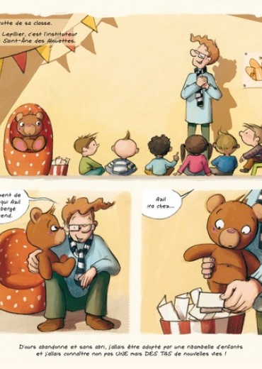 Azil, c'est le nom d'un ours, un ours en peluche pas comme les autres. Cet ours a une histoire singulière, c'est un ours trouvé, et il va vivre de nombreuses aventures grâce aux enfants d'une classe de maternelle. Simple peluche au regard des humains qui l'entourent, Azil est pourtant doté d'une conscience qu'il utilise pour partager avec le lecteur ses impressions, humeurs et sentiments. Dans ce premier épisode, Jean-Marie Omont, Charlotte Girard et Tanja Wenisch nous ouvrent les portes de la famille Becpincé, une famille où les a priori d'adultes sont passés au filtre du regard de l'enfant et de celui du petit ours. Les illustrations pastel de Tanja nous plongent directement dans l'univers enfantin de Gaëtan et donnent au jeune lecteur l'envie d'attraper son ourson et de vivre mille et une aventures avec lui !