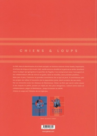 En 1941, dans le Montmartre d'un Paris occupé, un homme nommé Victor Saalia, impresario d'artistes de cirque et de music-hall, vacille entre la vénalité et le goût de la vérité. Gravitant dans la pègre qui gangrène le quartier de Pigalle, il se compromet avec l'occupant et les collaborateurs afin de vivre à sa guise, sans se mouiller, sans prendre position... Mais peu à peu, l'homme va prendre conscience de ce qui se joue, à commencer par les projets de rafles à l'encontre de fa population juive, dont certains de ses amis. Par sa rencontre avec les réseaux de Résistance, Victor va finir par servir cette cause à ses risques et périls, jouant un triple jeu des plus dangereux, coince entre nazis et collaborateurs, pègre et Résistance... jusqu'à trouver sa vérité. Chiens & Loups est l'histoire de ce triple jeu.