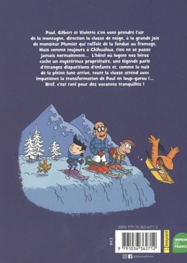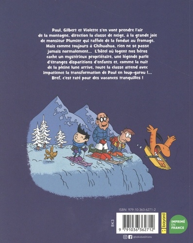 Pas d'école ce matin pour Paul, Groui, Gilbert et leurs amis, car c'est le jour du départ pour la montagne, en classe de neige. L'aventure commence dès le voyage en car et sa conductrice aux yeux instables... et se poursuit dans le drôle d'hôtel où ils sont hébergés - mais qui est son véritable propriétaire ? Sans compter que la pleine lune s'annonce, et avec elle la transformation de Paul en loup-garou... Bref, des vacances bien monstrueuses pour l'école Chihuahua !