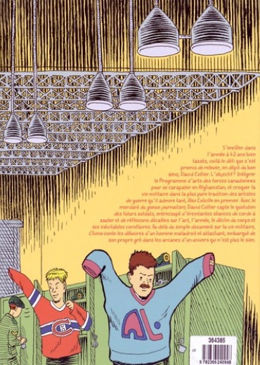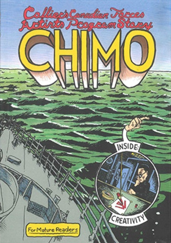 David Collier – considéré comme le Crumb canadien – se met en scène et raconte à coups de dessins détaillés et de commentaires décalés son retour dans l'armée canadienne pour couvrir la guerre en Afghanistan, alors qu'il est âgé de 40 ans. Situations comiques, digressions sur ses états d'âmes, petite leçon d'histoire sur l'artiste de guerre, Chimo est un condensé de moments choisis mais quotidiens et saura captiver, surprendre et amuser son lecteur.