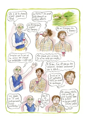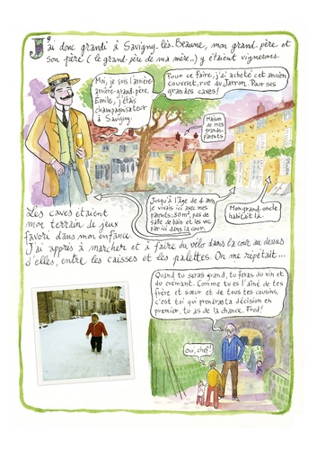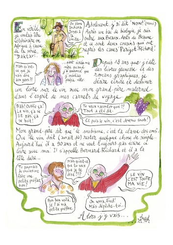 Fred Bernard a comme qui dirait le vin dans le sang. Né peu avant les vendanges en Bourgogne, il a grandi au milieu des cartons et des caisses de grands crus : ses terrains de jeux préférés étaient les caves de son grand-père et de son arrière-grand-père, tous deux vignerons. Sans cesse on lui répétait : " Quand tu seras grand, tu feras du vin ". Las, il a choisi une carrière d'auteur ; mais le plaisir du vin, lui, est resté. Au fil des pages, Bernard traduit cette passion en une série d'histoires courtes issues des anecdotes de ses aïeux et de ses réflexions personnelles sur le vin et la dégustation. On y retrouve, comme à son habitude, sa sensibilité, son humour, son sens aigu de l'observation des gens et son trait sensuel, pour une ode aux plaisirs du nectar des vignes.