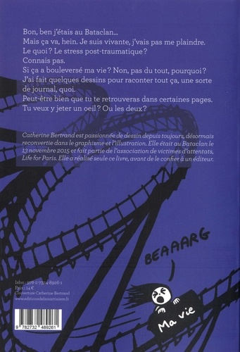 Bon, ben j'étais au Bataclan... Mais ça va, hein. Je suis vivante, j'vais pas me plaindre. Le quoi ? Le stress post-traumatique ? Connais pas. Si ça a bouleversé ma vie ? Non, pas du tout, pourquoi ? J'ai fait quelques dessins pour raconter tout ça, une sorte de journal, quoi. Peut-être bien que tu te retrouveras dans certaines pages. Tu veux y jeter un oeil ? Ou les deux ?