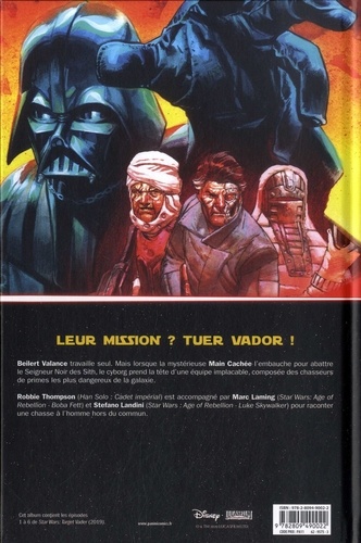 Beilert Valance travaille seul. Mais lorsque la mystérieuse Main Cachée l'embauche pour abattre le Seigneur Noir des Sith, le cyborg prend la tête d'une équipe implacable, composée des chasseurs de primes les plus dangereux de la galaxie. Robbie Thompson (Han Solo Cadet impérial) est accompagné par Marc Laming (Star' Wars : Age of Rebellion-Boba Fett) et Stefano Landini (Star Wars : Age of Rebellion - Luke Skywalker) pour raconter une chasse à l'homme hors du commun.