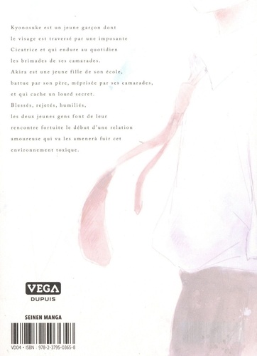 Kyonosuke est un jeune garçon dont le visage est traversé par une imposante cicatrice et qui endure au quotidien les brimades de ses camarades. Akira est une jeune fille de son école, battue par son père, méprisée par ses camarades, et qui cache un lourd secret. Blessés, rejetés, humiliés, les deux jeunes gens font de leur rencontre fortuite le début d'une relation amoureuse qui va les ameute fuir cet environnement toxique.