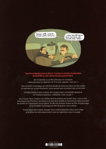Tous les cinéphiles vous le diront : il existe un nombre incalculable de clichés au sein môme des plus grands films. Qui n'a jamais vu un film d'horreur en se disant " Mais pourquoi se séparent-ils ? Ils vont y passer. c'est sûr ! " Une comédie romantique où l'héroïne décide de retourner dans se ville natale et retombe sur un ami d'enfance, nous savons tous comment cela se termine. Un beau discours pour motiver les troupes avant une bataille épique et un massacre glorieux ; inattendu, n'est-ce pas ? Vous l'aurez donc compris, les clichés dans le cinéma ont la dent dure, c'est un fait. Avec beaucoup d'humour, les auteurs se sont donc prêtés à l'exercice du détournement de clichés en n'épargnant aucun genre. Du film de science-fiction au film d'espionnage, de la comédie romantique au film de guerre, tout y passe. Prenez donc votre ticket, asseyez-vous confortablement dans votre siège et profitez de cette séance dont vous ne regretterez pas le voyage.