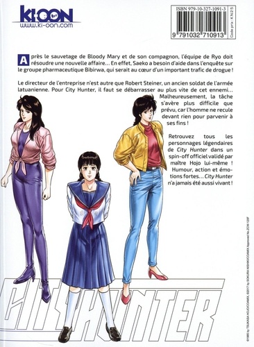 Après le sauvetage de Bloody Mary et de son compagnon, l'équipe de Ryo doit résoudre une nouvelle affaire... En effet, Saeko a besoin d'aide dans l'enquête sur le groupe pharmaceutique Bibirwa, qui serait au coeur d'un important trafic de drogue ! Le directeur de l'entreprise n'est autre que Robert Steiner, un ancien soldat de l'armée latuanienne. Pour City Hunter, il faut se débarrasser au plus vite de cet ennemi... Malheureusement, la tâche s'avère plus difficile que prévu, car l'homme ne recule devant rien pour parvenir à ses fins !