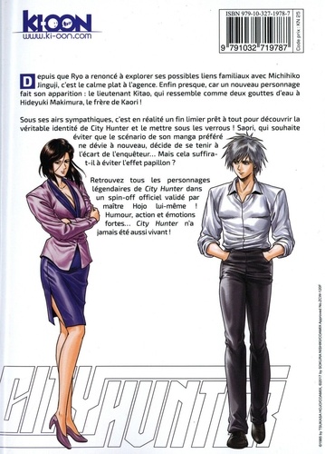 Depuis que Ryo a renoncé à explorer ses possibles liens familiaux avec Michihiko Jinguji, c'est le calme plat à l'agence. Enfin presque, car un nouveau personnage fait son apparition : le lieutenant Kitao, qui ressemble comme deux gouttes d'eau à Hideyuki Makimura, le frère de Kaori ! Sous ses airs sympathiques, c'est en réalité un fin limier prêt à tout pour découvrir la véritable identité de City Hunter et le mettre sous les verrous ! Saori, qui souhaite éviter que le scénario de son manga préféré ne dévie à nouveau, décide de se tenir à l'écart de l'enquêteur... Mais cela suffira-t-il à éviter l'effet papillon ? Retrouvez tous les personnages légendaires de City Hunter dans un spin-off officiel validé par maître Hojo lui-même ! Humour, action et émotions fortes... City Hunter n'a jamais été aussi vivant !
