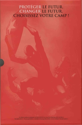 Il y a quelques années, la Loi de Recensement des Surhumains a déchiré la communauté super-héroïque. Captain America et Iron Man se sont alors retrouvés à la tête de camps opposés : Steve Rogers protégeait la liberté des héros, tandis que Tony Stark défendait la sécurité du peuple. Le temps a passé, les blessures se sont refermées et la douloureuse victoire d'Iron Man est désormais de l'histoire ancienne. Hélas, l'apparition d'un nouvel Inhumain va une fois de plus mettre les super-héros au coeur d'un débat moral. Génétiquement modifiés par les Krees il y a plusieurs siècles de cela, les Inhumains obtiennent leurs pouvoirs en s'exposant à l'énergie des cristaux tératogènes. Lors des événements d'Infinity, Flèche Noire, le roi de ce peuple, a détruit leur cité. Ce faisant, les cristaux ont été pulvérisés sous la forme d'un nuage qui survole désormais la surface terrestre. Lorsque le nuage entre en contact avec des descendants d'Inhumains, il active leur génome dormant. Dès lors, ces individus développent des pouvoirs qui peuvent prendre des formes les plus variées... Ce volume recueille l'intégralité de la saga événement Civil War (2016), la série satellite Civil War II : Choosing Sides (2016) ainsi que les one-shots The Fallen (2016), The Accused (2016) et la conclusion Civil War II : The Oath (2017).