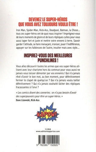 Clashez comme un super-héros ! - Les punchlines de nos héros préférés ! - Inspirez-vous des meilleurs pour avoir la répartie d'un super-héros ! - Par l'auteur des best-sellers "Agir et Penser comme un chat" DEVENEZ LE SUPER-HEROS QUE VOUS AVEZ TOUJOURS VOULU ETRE ! Iron Man, Spider-Man, Kick-Ass, Deadpool, Batman, la Chose... tous ces super-héros ont de quoi nous inspirer ! Imprégnez-vous de leurs moments de gloire et de leurs répliques cultes pour vous aussi taper fort et juste et mettre votre ennemi à terre. Savoir garder l'attitude, se faire menaçant, ironiser, jouer l'indifférence, appuyer sur les faiblesses de l'autre, insulter mais avec style... INSPIREZ-VOUS DES MEILLEURES PUNCHLINES ! Vous allez découvrir toutes les armes que vos super-héros utilisent avec leur charisme hors du commun pour vous aussi ne jamais vous laisser démonter par vos ennemis ! Qui n'a jamais rêvé d'avoir le bon mot, au bon moment, pour définitivement fermer le clapet de quelqu'un ? Qui n'a jamais voulu tailler définitivement ? Qui n'a jamais souhaité lâcher des répliques fracassantes à l'envi ? " Les comics disent des conneries : on n'a pas besoin d'avoir des superpouvoirs pour être un super-héros. " Dave Lizewski, Kick-Ass