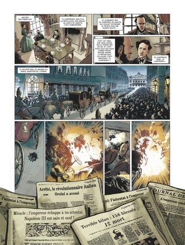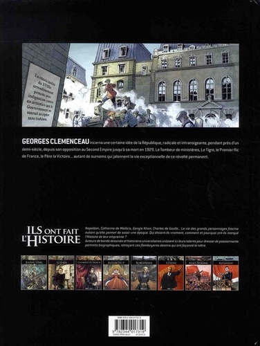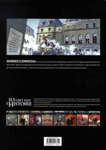 " Etre vaincu vaut mieux que d'être vainqueur du côté des scélérats. " Nantes, février 1858. Soupçonné d'avoir participé à l'attentat contre Napoléon III, Benjamin Clémenceau, dont le seul tort est d'avoir été un farouche opposant à l'Empereur, est arrêté sous les yeux de son fils, Georges. De cette injustice naitra dans le coeur du jeune homme un esprit de révolte qui forgera l'ensemble de sa vie politique, commencée en prison sous le Second Empire, achevée aux lendemains de la Première Guerre mondiale. Alors que 2017 célèbrera les 100 ans de sa nomination à la Présidence du Conseil, redécouvrez en BD la carrière longue et passionnée de Clémenceau le radical, le rebelle : l'un des personnages les plus importants de la IIIe République.