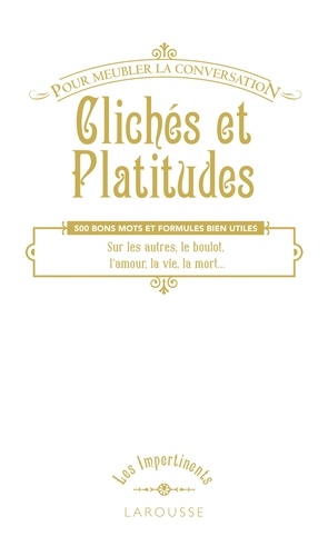 Parce qu'il n'est pas toujours facile d'avoir de la répartie en société, parce qu'il arrive que l'on formule mal ou pas du tout une phrase qui peut s'avérer décisive, cette collection sortira de l'embarras toutes celles et ceux qui ne trouvent pas leurs mots ! Clichés et platitudes (pour meubler la conversation) : ne jamais faire d'impaire, rester diplomate et se fondre dans le décor, c'est possible ! Dans la même collection : Excuses bidons et mensonges futés (pour toutes les situations) : c'en est finit des bourdes, des oublis malencontreux, vous êtes parfait et cela s'entend ! Insultes et réparties (pour toutes les occasions) : ne restez plus sans voix, renvoyez la balle au bond et frappez fort ! Techniques d'approche pour dragueurs amateurs : pour attirer l'attention, charmer ou conclure. Rien que des mots ! Décalés, drôles, mais toujours efficaces, ces 4 guides de conversation résolument modernes répondent à toutes les situations.