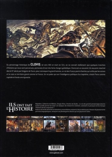 Du personnage historique de clovis, né vers 465 et mort en 511, on ne connaît réellement que quelques tranches d'histoire qui nous sont parvenues, porteuses d'une très forte charge symbolique. Clovis est un souvenir. Un souvenir réactivé dés le Vie siècle par Grégoire de Tours, pour convoquer le grand homme, un roi des Francs parmi d'autres qui unifia par les armes et la ruse un territoire grand comme la France. Un rai païen qui eut l'intelligence poétique d'un baptême, choisit Paris comme capitale et fonda une dynastie.