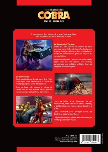 Le Génie de l'Espace Cobra et Lady croisent le chemin de deux comètes. L'une d'elles pénètre dans le Turtle et prend la forme d'une jeune femme du nom de Bellamy. L'autre se révèle être un génie de l'espace nommé Galtan. Impressionné par les capacités de Cobra, Galtan décide d'en faire son esclave. Mais Bellamy va tout faire pour se libérer et libérer Cobra de l'emprise du mauvais génie. La Porte d'Or Sur la planète Vénus, Secret, agent de la Police Galactique, tente d'échapper à la Guilde des Pirates pour protéger la Clé de Shiva. Dans sa fuite, elle percute la voiture de Cobra, qui est très troublé par sa parfaite ressemblance avec la défunte Dominique. Il va l'aider à se débarrasser de ses poursuivants, mais alors qu'ils sont à l'hôpital, la Guilde attaque de nouveau pour récupérer la Clé. Cobra intervient pour protéger Secret de Black Bone et du terrible Zoros. La jeune femme lui explique alors sa mission et l'embarque dans son voyage.