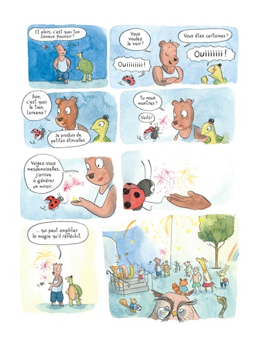 C'est l'été au village des Mitaines et nos héros vont effectuer un stage en entreprise afin de découvrir le monde du travail. Une belle aventure humaine en perspective, malheureusement l'ambiance du petit groupe n'est pas au beau fixe. En découvrant son pouvoir, Arthur est en effet devenu très imbu de lui-même et personne ne peut plus le supporter... Surtout Kitsu, qui va avoir fort à faire pour essayer de remettre son camarade dans le droit chemin. Entre chronique sociale et écologique, premiers émois amoureux et amitiés naissantes. Voici une nouvelle aventure haute en couleur et lumineuse dans la vallée des Mitaines !