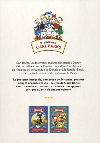 Une collection incontournable pour la première fois en coffret. La Dynastie Donald Duck rassemble, sur 24 volumes, l'intégralité de l'oeuvre de Carl Barks, l'auteur le plus réputé et le plus talentueux des aventures de Donald, créateur de nombreux personnages dont l'incomparable Picsou. Aventures, mystères, magie sont bien sûr au rendez-vous de ces histoires, mais aussi humour, amitié et cacophonies familiales ! En introduction, chaque volume propose un appareil critique de l'oeuvre de l'auteur, et chaque histoire est précédée d'une courte fiche d'identité bibliographique permettant de la replacer dans le contexte de sa première publication. La mise en couleur de l'ensemble des bandes dessinées a été refaite à l'occasion de cette intégrale qui continue de ravir les admirateurs de Carl Barks et les collectionneurs bibliophiles. Ce coffret inédit, comprenant le premier volume de la série avec une cale est l'occasion pour celles et ceux qui seraient passés à côté de commencer la collection de la meilleure des manières.