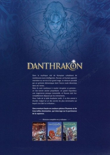 Dans la mythique cité de Kompiam cohabitent de nombreuses races intelligentes. Nuwan. un humain apprenti marmiton au service d'un grand mage. se retrouve possédé par un grimoire démoniaque dont l'encre coule désormais dans ses veines. Mais ils sont nombreux à vouloir récupérer ce grimoire : un duc-sorcier ancien propriétaire, un grand inquisiteur, une magicienne presque immortelle. et Nuwan doit fuir. complètement dépassé par les évènements. Avec l'aide de la belle étudiante Leréh, il va être amené à élucider malgré lui un des secrets les plus renversants sur lequel s'est bâti la civilisation... Une aventure haute en couleurs pleine d'humour et de trouvailles étonnantes, qui interroge sur la pertinence de la sapience.