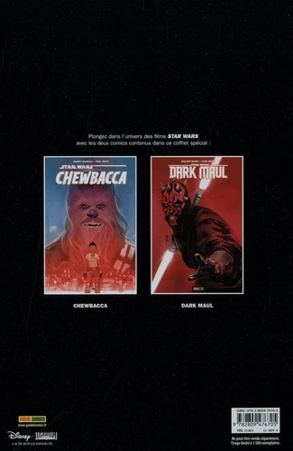 Plongez dans l'univers des films STAR WARS avec les deux comics contenus dans ce coffret spécial : Chewbacca et Dark Maul.