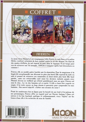 Le jeune héros Himmel et ses compagnons, l'elfe Frieren le nain Eisen et le prêtre Heiter, rentrent victorieux de leur combat contre le roi des démons. Au bout de die années d'efforts, ils ont ramené la paix dans le royaume. Il est temps pour eux de retrouver une vie normale... Difficile à imaginer après tant d'aventures en commun ! Frieren, elle, ne semble guère touchée par la séparation Pour la magicienne à la longévité exceptionnelle, une décennie ne pèse pas lourd Elle reprend la route en solo et promet de retrouver ses camarades un demi-siècle plus tard. Elle tient parole... mais ces retrouvailles sont aussi les derniers instants passés avec Himmel, devenu un vieillard qui s'éteint paisiblement sous ses yeux- Frieren est sous le choc... La vie des humains est si courte ! L'elfe a beau être experte en magie, il lui reste encore un long chemin à parcourir pour comprendre la race humaine... Son nouvel objectif : s'initier aux arcanes du coeur ! Primé de nombreuses fois au Japon pour la beauté de son trait et la justesse de ses personnages, Frieren offre un regard neuf sur l'heroic fantasy ! Dans cet univers à la fois touchant, poétique et enthousiasmant, vivez "l'après" sur les traces d'une elfe à la recherche du sens de l'amitié.