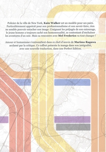 Policier de la ville de New York, Kain Walker est un modèle pour ses pairs. Particulièrement apprécié pour son professionnalisme et son savoir-faire, rien ne semble pouvoir entacher son image. Craignant les préjugés de son entourage, le jeune homme a toujours caché son homosexualité, se contentant d'enchaîner les aventures d'un soir. Mais sa rencontre avec Mel Frederics va tout changer ! Amour et humanisme s'entremêlent dans ce chef-d'oeuvre de Marimo Ragawa acclamé par la critique. Ce coffret présente le manga dans son intégralité, avec une nouvelle traduction, dans une Perfect Edition.