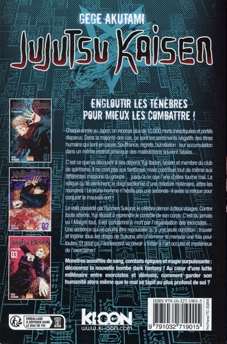 Engloutir les ténèbres pour mieux les combattre ! Coffret des trois premiers volumes - Edition 2024 : 1 planche de stickers en bonus ! Chaque année au Japon, on recense plus de 10 000 morts inexpliquées et portés disparus. Dans la majorité des cas, ce sont les sentiments négatifs des êtres humains qui sont en cause. Souffrance, regrets, humiliation : leur accumulation dans un même endroit provoque des malédictions souvent fatales... C'est ce que va découvrir à ses dépens Yuji Itadori, lycéen et membre du club de spiritisme. Il ne croit pas aux fantômes, mais contribue tout de même aux différentes missions du groupe... jusqu'à ce que l'une d'elles tourne mal. La relique qu'ils dénichent, le doigt sectionné d'une créature millénaire, attire les monstres ! Le jeune homme n'hésite pas une seconde : il avale la relique pour conjurer le mauvais sort ! Le voilà possédé par Ryomen Sukuna, le célèbre démon à deux visages. Contre toute attente, Yuji réussit à reprendre le contrôle de son corps. C'est du jamais vu ! Malgré tout, il est condamné à mort par l'organisation des exorcistes... Une sentence qui ne pourra être repoussée qu'à une seule condition : trouver et ingérer tous les doigts de Sukuna afin d'éliminer la menace une fois pour toutes. Et pour ça, l'adolescent va devoir s'initier à l'art occulte et mystérieux de l'exorcisme ! Monstres assoiffés de sang, combats épiques et magie surpuissante : découvrez la nouvelle bombe dark fantasy ! Au coeur d'une lutte millénaire entre exorcistes et démons, comment garder son humanité alors même que le mal se tapit au plus profond de soi ?