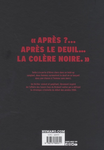 Après la perte d'êtres chers dans un hold-up sanglant, deux femmes surmontent le deuil en se lançant dans une chasse à l'homme sans merci. Quand les forces de l'ordre sont impuissantes, la colère devient le seul moyen d'avancer. Un thriller violent et palpitant, librement inspiré de l'affaire des tueurs fous du Brabant wallon, qui a défrayé la chronique criminelle du début des années 80.