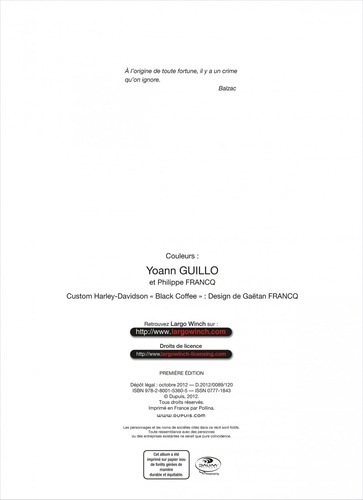 Faux héritier ou véritable enfant caché ? Largo Winch face à la vengeance d'une femme... Impliqué malgré lui dans une affaire de trafic d'armes et de terrorisme international, Largo Winch n'a pas eu d'autre choix que de fausser compagnie aux agents du FBI lancés à ses trousses. Ce qui l'attend, dans les eaux troubles de la mer Noire, offre un visage inattendu : celui d'une femme déterminée à se venger. Et au prix fort, de préférence.