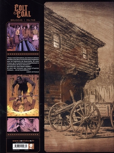 " Quand l'argent fait la loi, la vengeance prend le pas sur la justice " 1894, Amérique. A Newcastle, la mine recrache chaque jour son lot d'ouvriers. Pour continuer à extraire en masse le charbon, les habitants ont vu affluer en ville des immigrés tchèques. Prêts à descendre dans les boyaux étroits au péril de leur vie, ils obéissent aux ordres de l'homme le plus influent de la région, Horace Frick. Mais quand l'un des mineurs est sauvagement assassiné, la colère gronde. Dans ce contexte explosif, Horace a tout intérêt à ce que ce crime soit élucidé au plus vite, quitte à employer des méthodes crapuleuses. C'est le début d'une enquête qui va réveiller les plus vils instincts et creuser davantage le fossé entre les locaux, attachés à leur terre, et les mineurs, détruisant malgré eux la beauté des paysages montagneux. Et tandis que Miss Miersch, la jeune préceptrice de la famille Frick, prêche en vain pour plus de tolérance, d'autres corps sont découverts. Les autorités vont bientôt se retrouver dépassées par les événements. En lançant des arrestations abusives, le shérif souffle dangereusement sur les braises d'une révolte dont personne n'avait prévu la folie sanguinaire... Véritable thriller social qui aborde les questions de l'immigration et du rejet, du racisme et de la traite humaine, ce western à l'atmosphère crépusculaire relate l'impossible cohabitation dans une Amérique aux prises avec ses démons. Avec une forte tension dramatique, le récit de Vincent Brugeas nous plonge au coeur du cachot pour un final grandiose. Grâce au talent de Mr Fab, et à sa palette de couleurs, le voyage n'est que plus authentique !