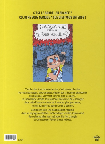 C'est le bordel en France ? Coluche vous manque ? Que dieu vous entende ! C'est la crise. C'est encore la crise, c'est toujours la crise. Par-delà les nuages, Dieu constate, dépité, que la France s'abandonne aux divisions. Comment venir en aide à ce pays ? Le Grand Barbu décide de ressusciter Coluche et de le renvoyer dans cette France en colère où il incarne, plus que jamais, " celui qui ouvre sa gueule et dit la Vérité ". Commence alors une déambulation magique dans un paysage de réalités : mélancolique et drôle, le plus aimé de nos humoristes nous retrouve à la fois changés et furieusement fidèles à nous-mêmes.