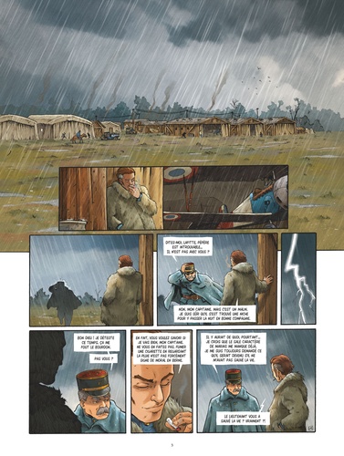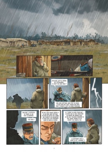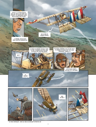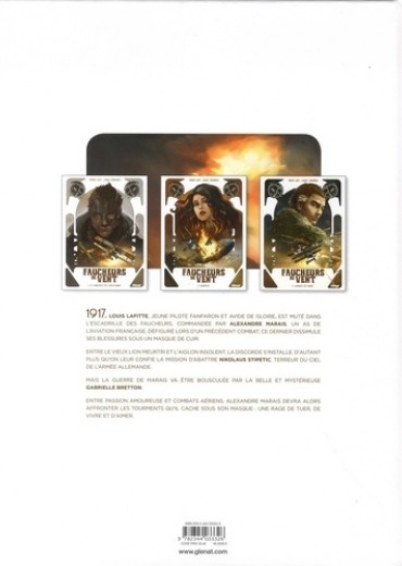 Les vrais pilotes prennent tout de haut... Même la mort. Abattu par Stipetic lors de l'attaque du zeppelin, Marais est porté disparu... Personne ne sait s'il est mort ou capturé par l'ennemi, aussi le capitaine Ackerman décide-t-il de mettre Lafitte à la tête des Faucheurs. Le jeune pilote va devoir mettre de côté son caractère solitaire et impétueux pour se montrer à la hauteur. Et surtout être capable de résister aux charmes de la belle Gabrielle, l'amante éplorée de son rival... Avec Faucheurs de vent, Thierry Lamy nous plonge dans l'univers passionnant des premiers combats aériens et de leurs pionniers au courage exemplaire. Une histoire de camaraderie et de rivalités au souffle romanesque, emportée par l'ampleur du trait de Cédric Fernandez (Saint-Exupéry) et sa science du dessin d'aviation.