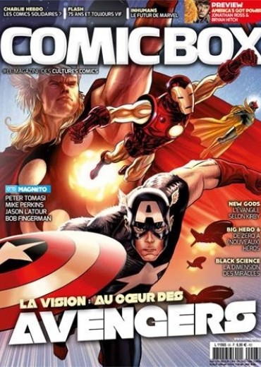 Articles : Avec les Avengers de Paul Renaud en couverture. Comment la sphère des comics a vécue les attentats de Charlie Hebdo ? Où est-ce que Marvel va avec les Inhumans ? A quoi sert la Vision ? Quel âge a réellement Flash... mais aussi Black Science, l'Agent Carter, les New Gods ou encore Red Hood ne sont qu'une partie du sommaire de ce numéro...